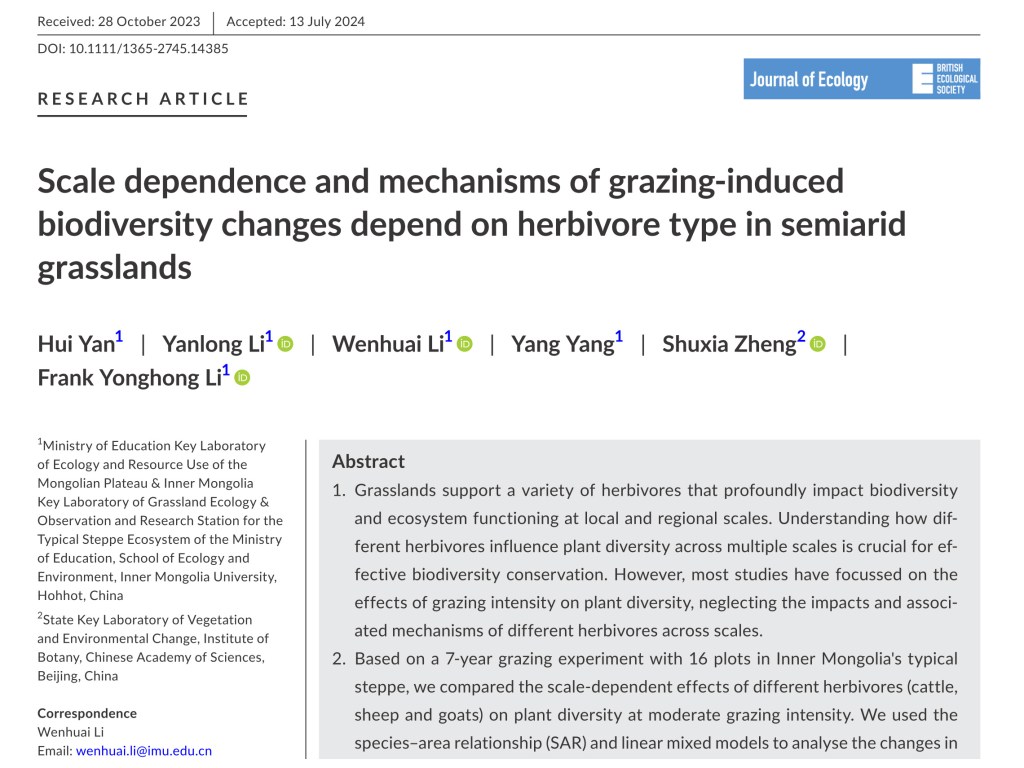 Congratulation Hui Yan for her paper in Journal of Ecology!
