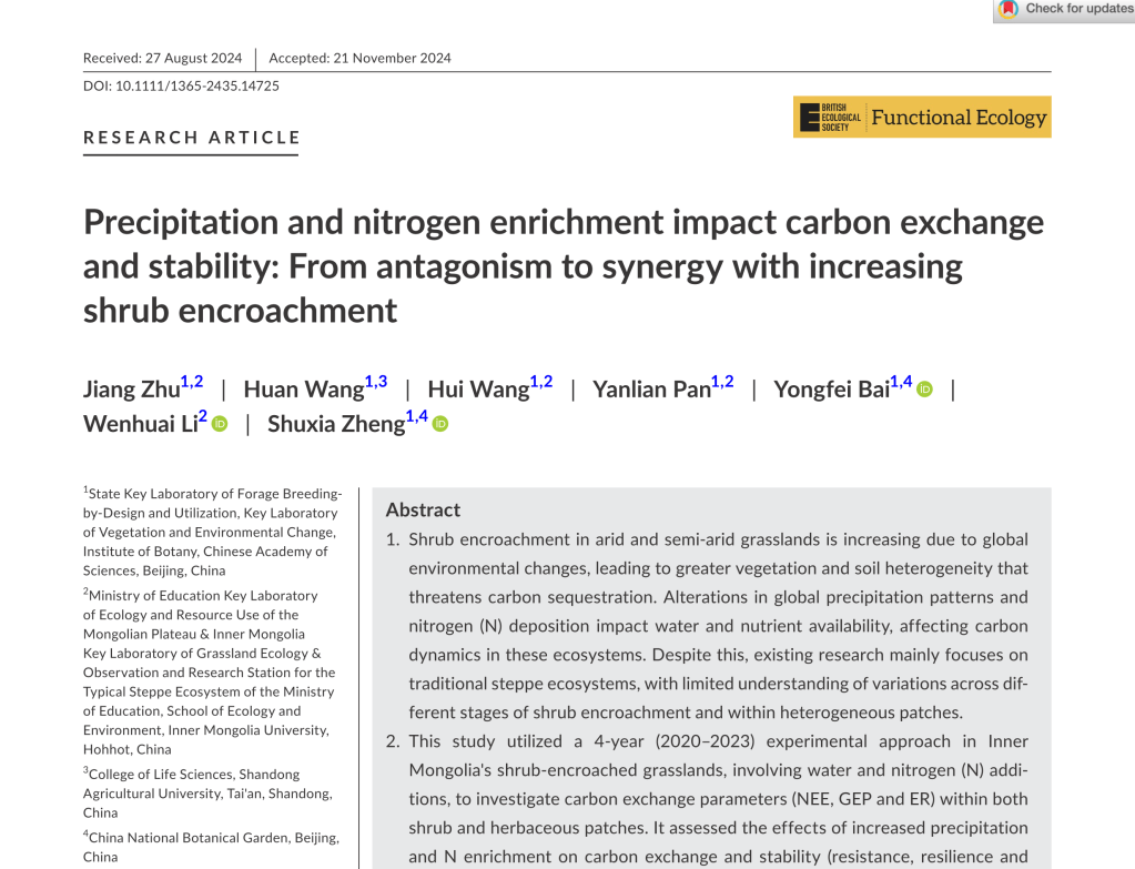 Congratulation Jiang Zhu for his paper in Functional Ecology!